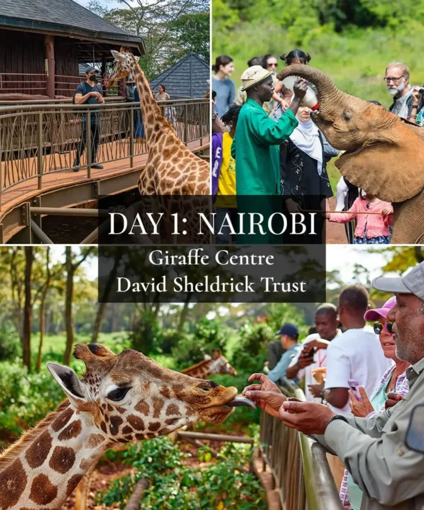 Morning: Visit the Giraffe Centre, where you’ll come eye-to-eye with the endangered Rothschild giraffe. Feed them, pose for that iconic “giraffe kiss” photo, and learn about Kenya’s incredible conservation efforts.