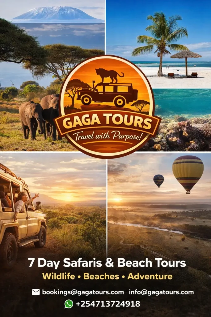 From the misty morning wildlife of Nairobi to the pink-hued sunsets over Diani Beach, every corner of this country tells a different story. And with Gaga Tours, you don’t just see Kenya—you live it.
